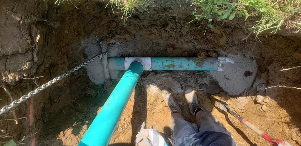 Emergency Sewer Repairs Below is an example of an emergency sewer repair. Another company apparently bored right through sch 40 sewer pipe. ICC repaired it promptly so the new homeowners could enjoy their first night in their new home.