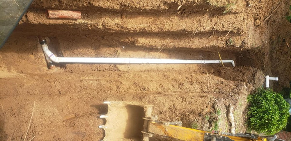 Emergency Sewer Repairs Below is an example of an emergency sewer repair. Another company apparently bored right through sch 40 sewer pipe. ICC repaired it promptly so the new homeowners could enjoy their first night in their new home.